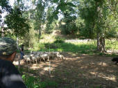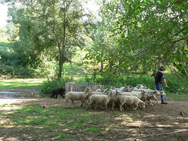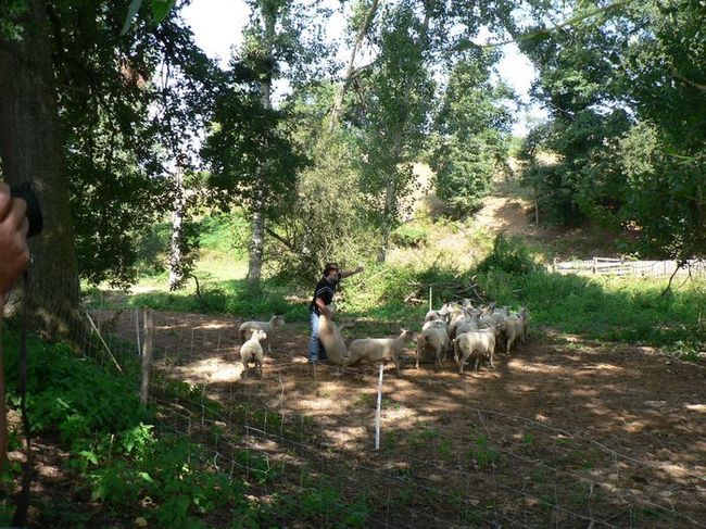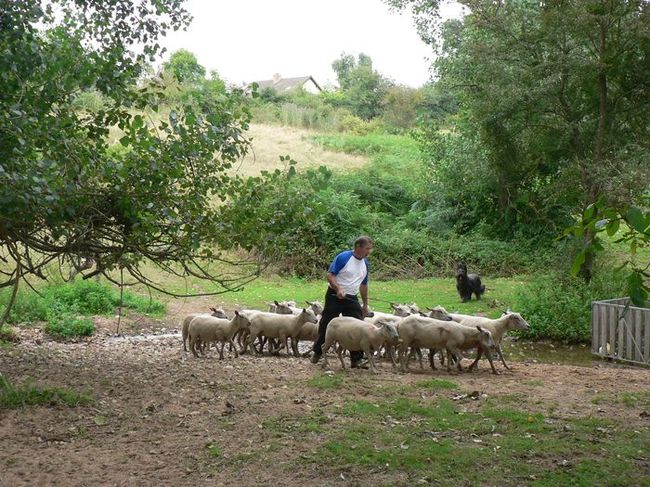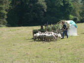 ..........puis Bernard attrape une brebis alors que Vanda bloque le troupeau en place |